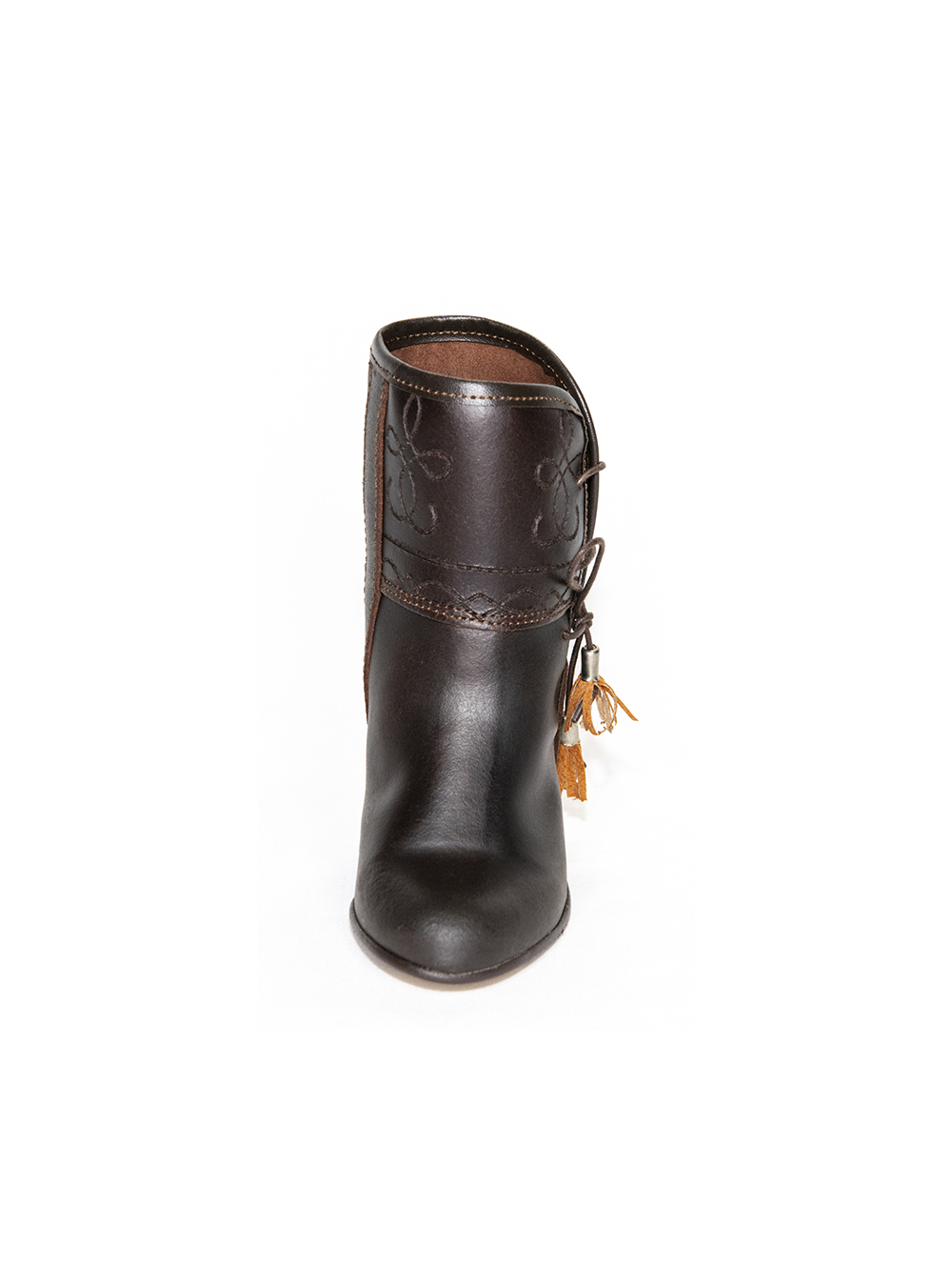 Bota campera, piel de becerro, color castaña, adorno