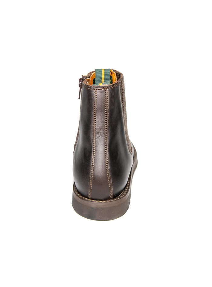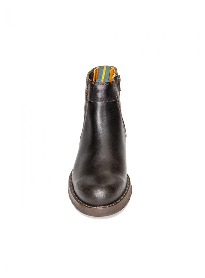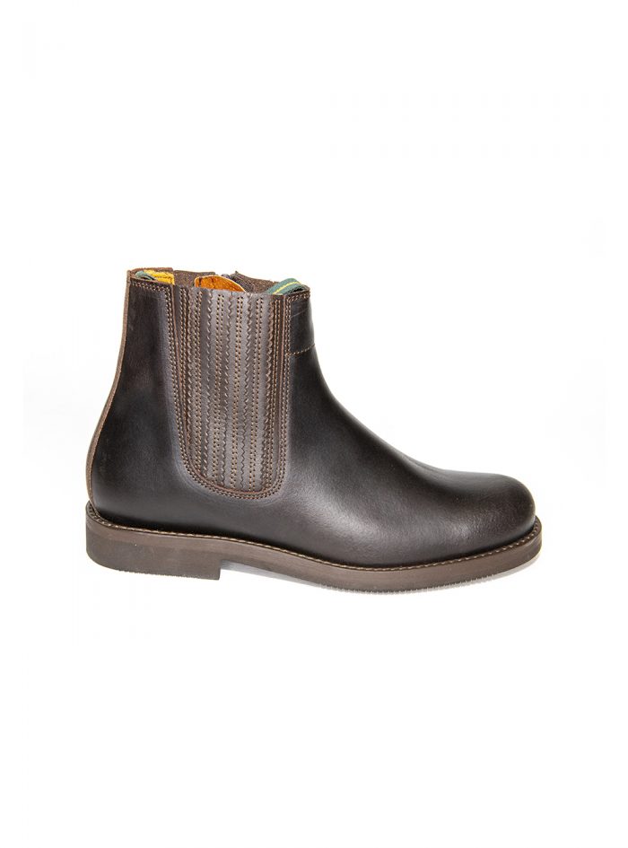 Bota corta moldeada Valverde del Camino, piel de becerro, color castaña, adorno fuelle plisado, cremallera interior en fuelle y suela de goma.