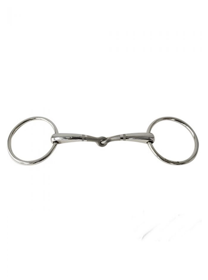 Filete Sefton de acero inoxidable y anilla suelta con embocadura partida y pulida a mano con acabado mate. La embocadura es anatómica formando un arco de 45º para mejor acople y confort en la boca del caballo.